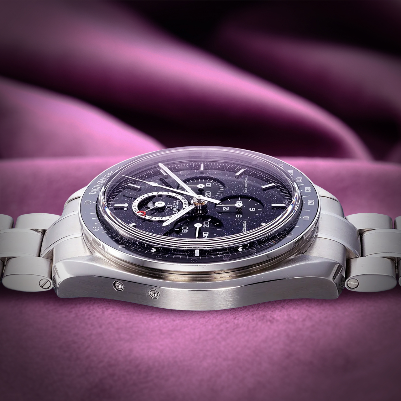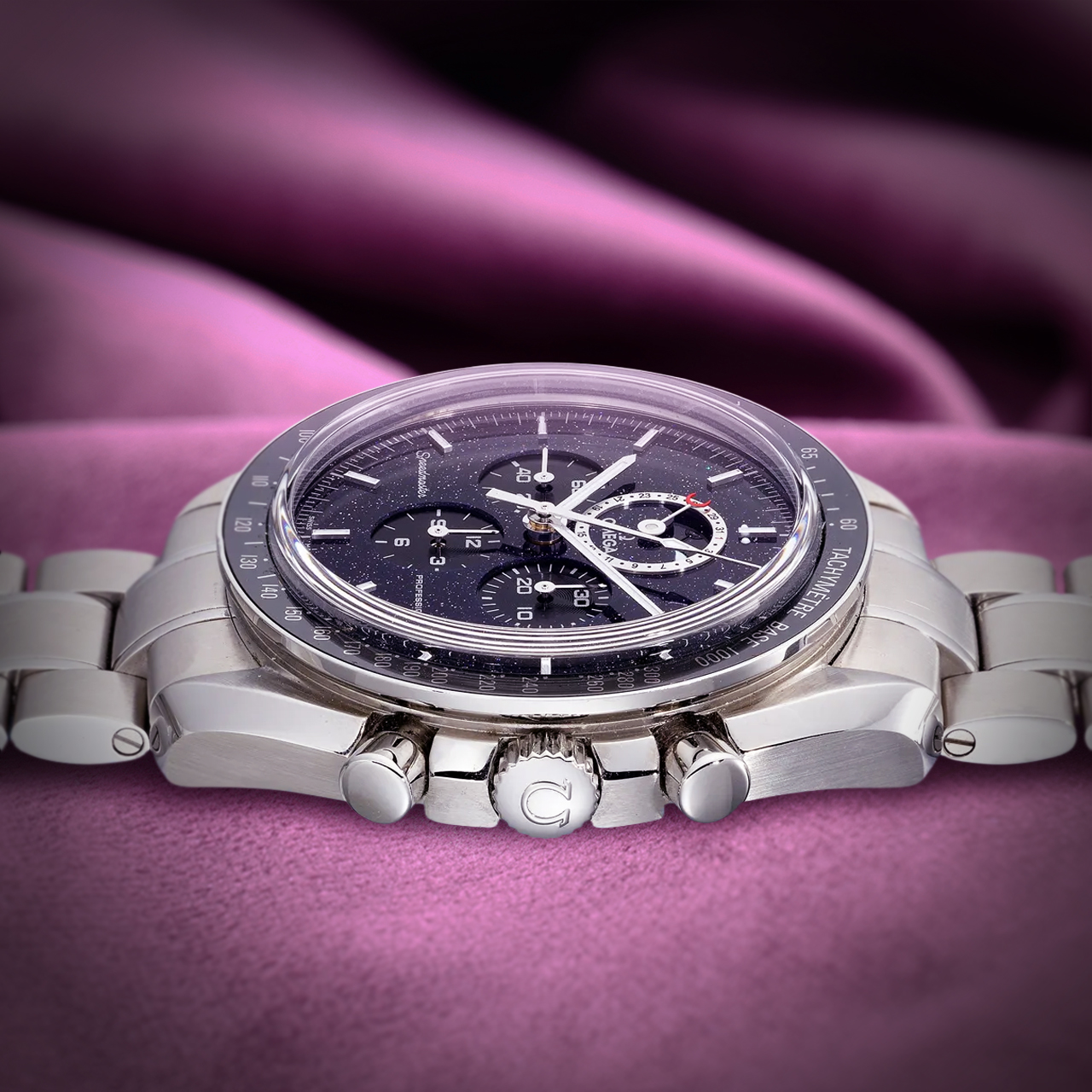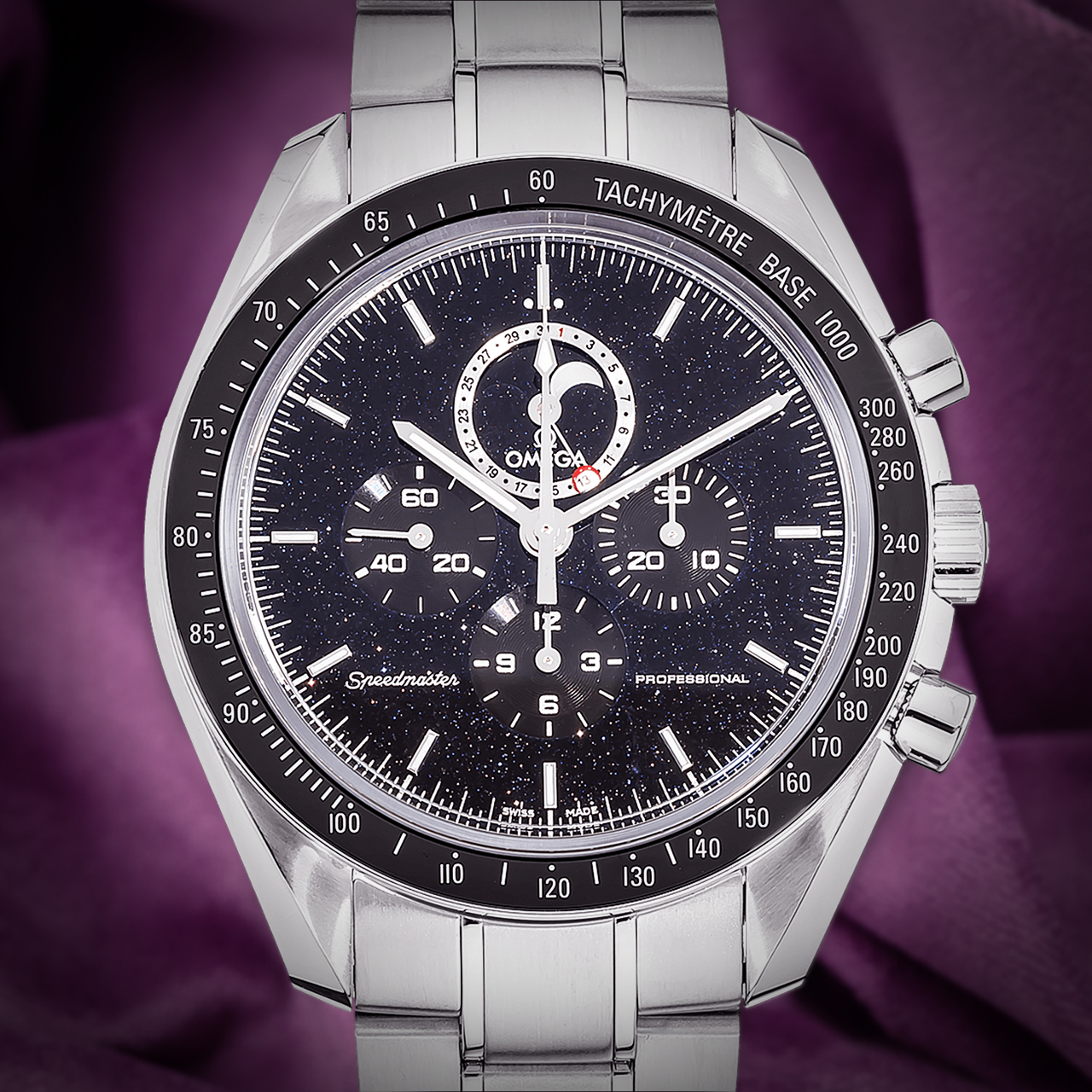 The Omega Speedmaster Moonphase Moonwatch Professional Aventurine 311.30.44.32.01.001 is one of OMEGA’s most iconic timepieces. Having been a part of all six lunar missions, the legendary Speedmaster is an impressive representation of the brand’s adventurous pioneering spirit.