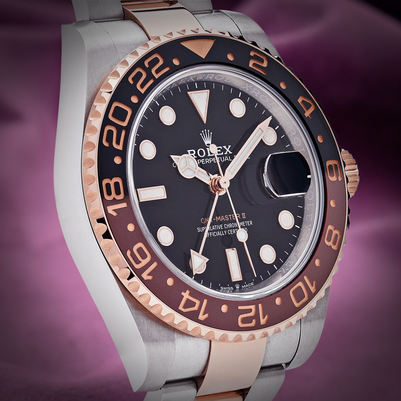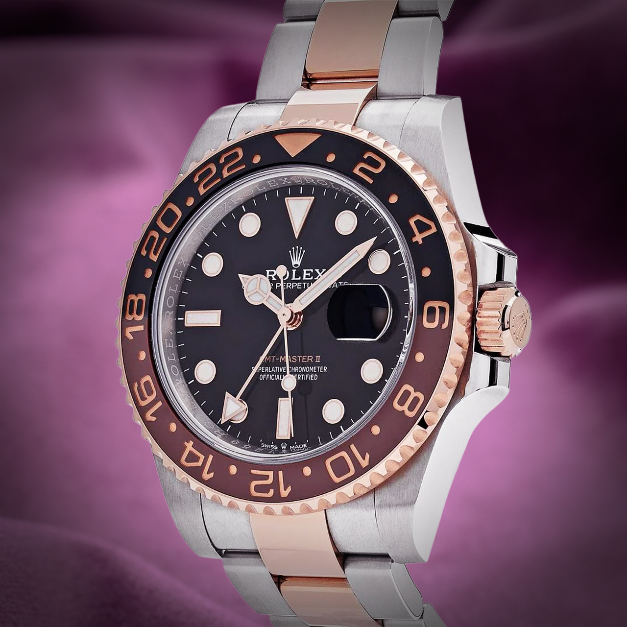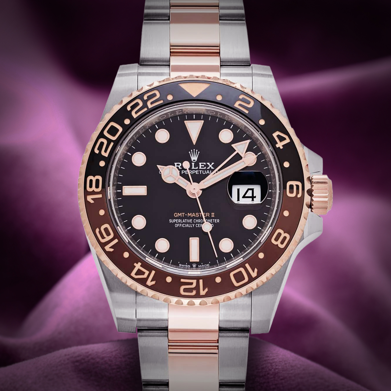 Introducing the Rolex GMT-Master II 126711CHNR ‘Root Beer,’ a striking timepiece that combines stainless steel and 18K Everose gold for a distinctive look.