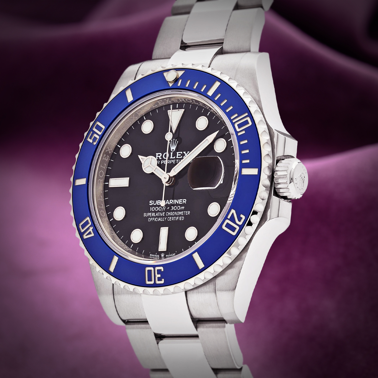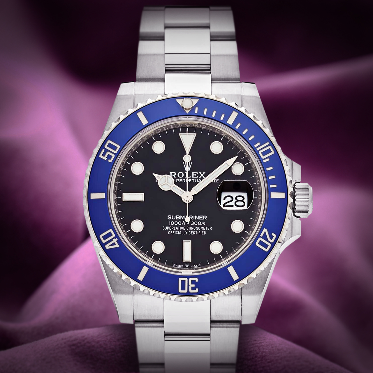 Introducing the Rolex Submariner Date 126619LB ‘Cookie Monster,’ a luxurious blend of style and functionality. This watch features a sleek black dial with luminous hour markers and hands for optimal visibility. The 40mm white gold case adds a touch of elegance, while the striking blue ceramic bezel enhances its sporty look. Equipped with a date function at 3 o’clock, the watch also includes a unidirectional rotating bezel for tracking dive times. The robust Oyster bracelet ensures a comfortable and secure fit. The Rolex Submariner Date ‘Cookie Monster’ is ideal for those who seek a high-end timepiece that combines sophisticated design with exceptional performance, perfect for both diving and everyday wear. |