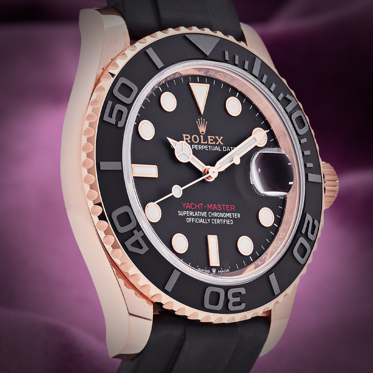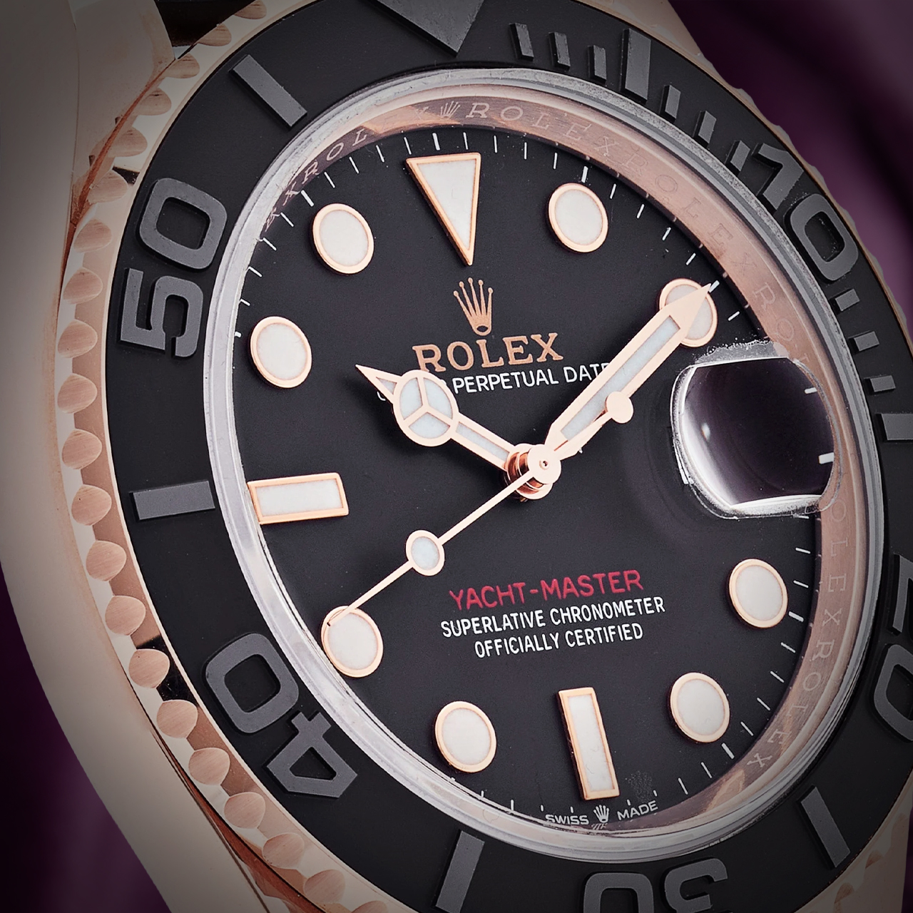 Rolex Yacht-Master 40 126655 40mm 18k Everose Gold Black Dial Oysterflex