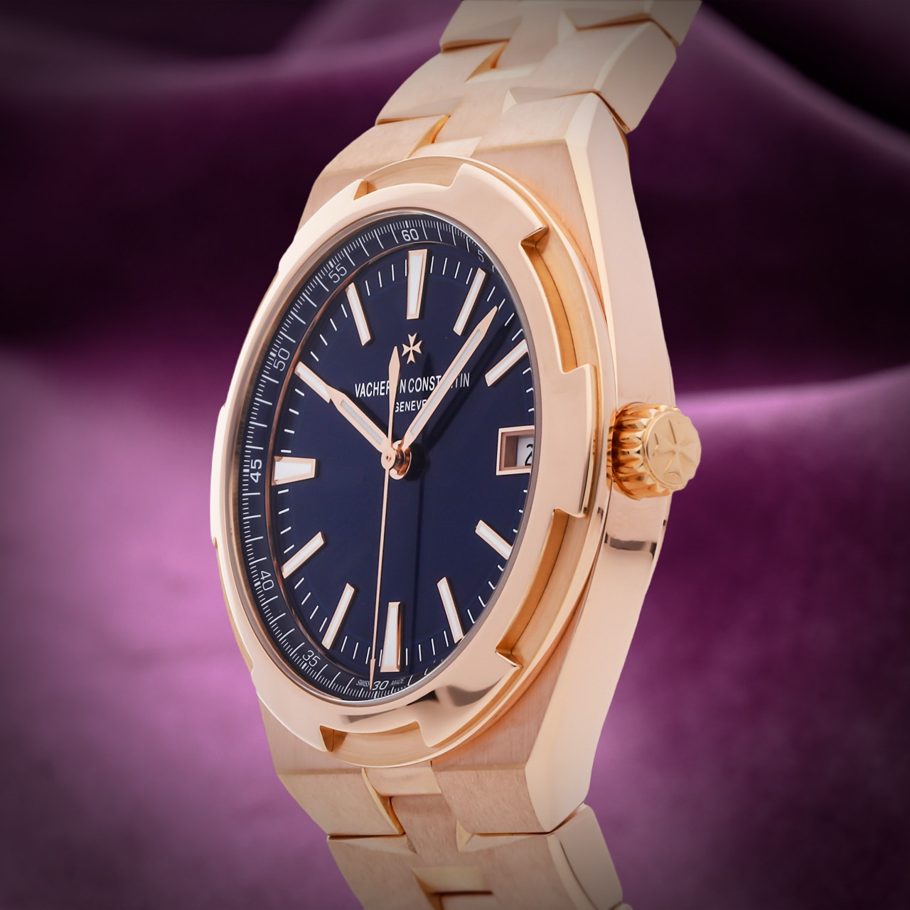 Introducing the Vacheron Constantin Overseas Automatic, a stunning blend of luxury and functionality. This watch features an elegant 18K rose gold case, providing a warm and sophisticated touch. The striking blue dial is adorned with a sunburst finish, enhancing its depth and vibrancy. It showcases luminous hour markers and hands for clear readability, along with a date display at 3 o’clock. Powered by the reliable 5100 automatic movement, this watch offers a power reserve of approximately 60 hours. The timepiece is completed with a robust rose gold bracelet, ensuring a comfortable and secure fit for any occasion. Elevate your collection with the Vacheron Constantin Overseas Automatic, where timeless elegance meets exceptional craftsmanship. |